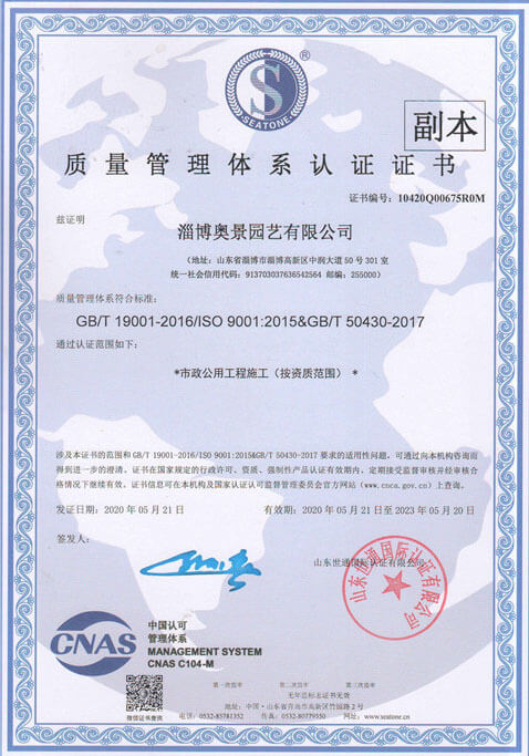 質(zhì)量管理體系認(rèn)證(園林綠化工程)